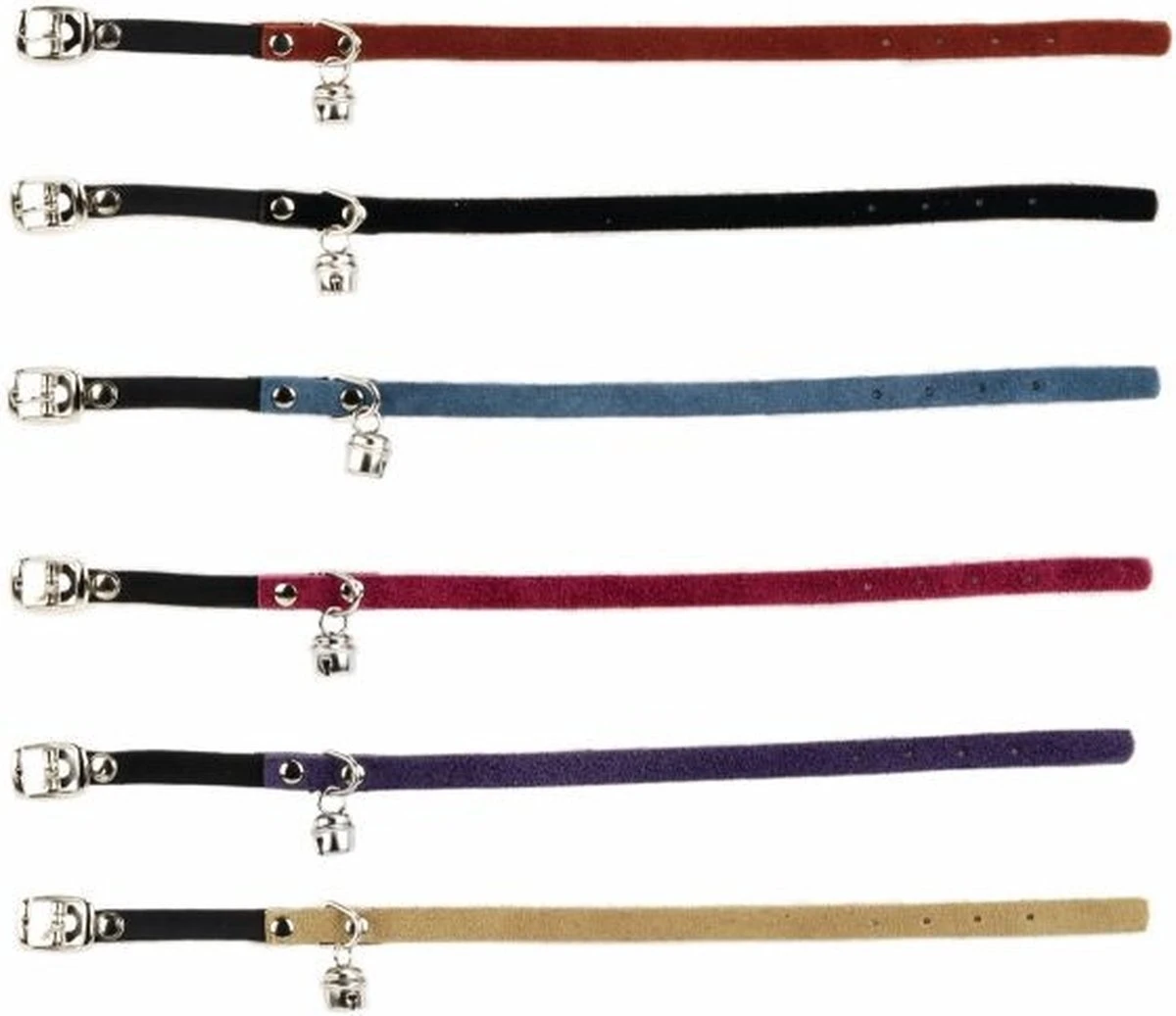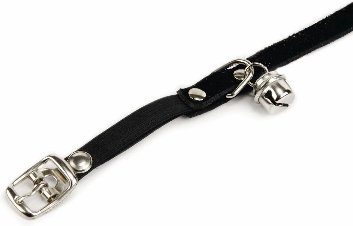 Een suede kattenhalsbandje met belletje, zodat vogels en andere kleine dieren op tijd gealarmeerd worden voor uw kat. Kleur. zwart.