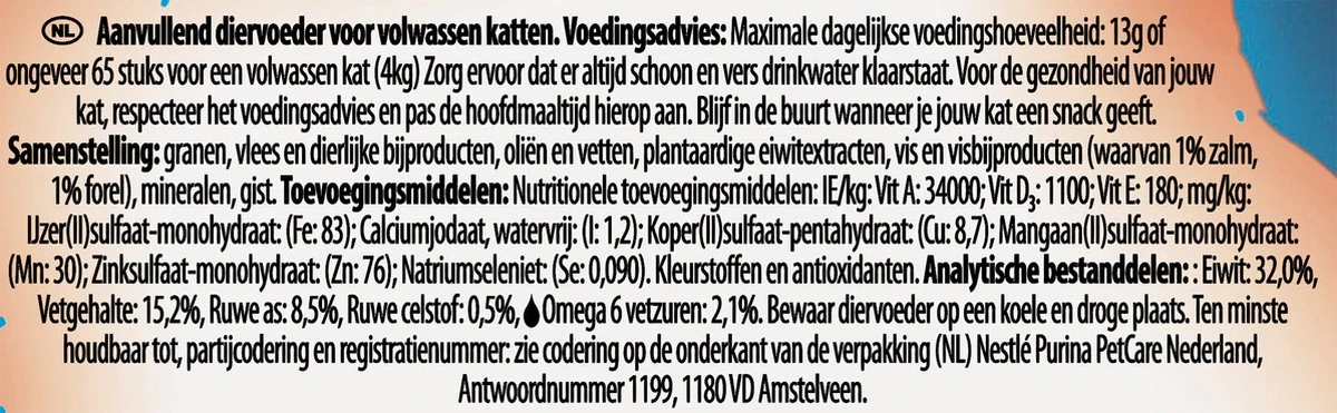 Verras je kat keer op keer met een smakelijke, knapperige snack, met de spannende combinatie van heerlijke smaken, vormen en kleuren in elke verpakking! Met eiwitten, vitaminen en Omega 6 vetzuren die helpen bij een gezond en gelukkig leven van je kat. Voel je goed als je je kat verwent met de Felix® Crispies.
