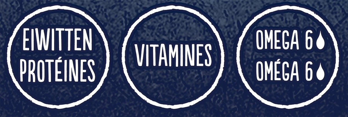 | Analytische bestandsdelen | <br />Eiwit 35,0%,<br />Vetgehalte 19,5%,<br />Ruwe as 9,5%,<br />Ruwe celstof 0,5%,<br />Omega 6-vetzuren 2,6%. |