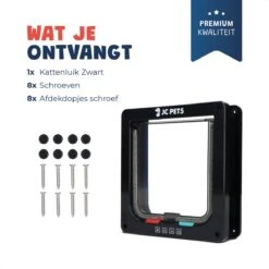Merkloos Kattenluik Zwart Met Tunnel – 4 Vergrendelingsstanden – Weerbestendig – Maat L