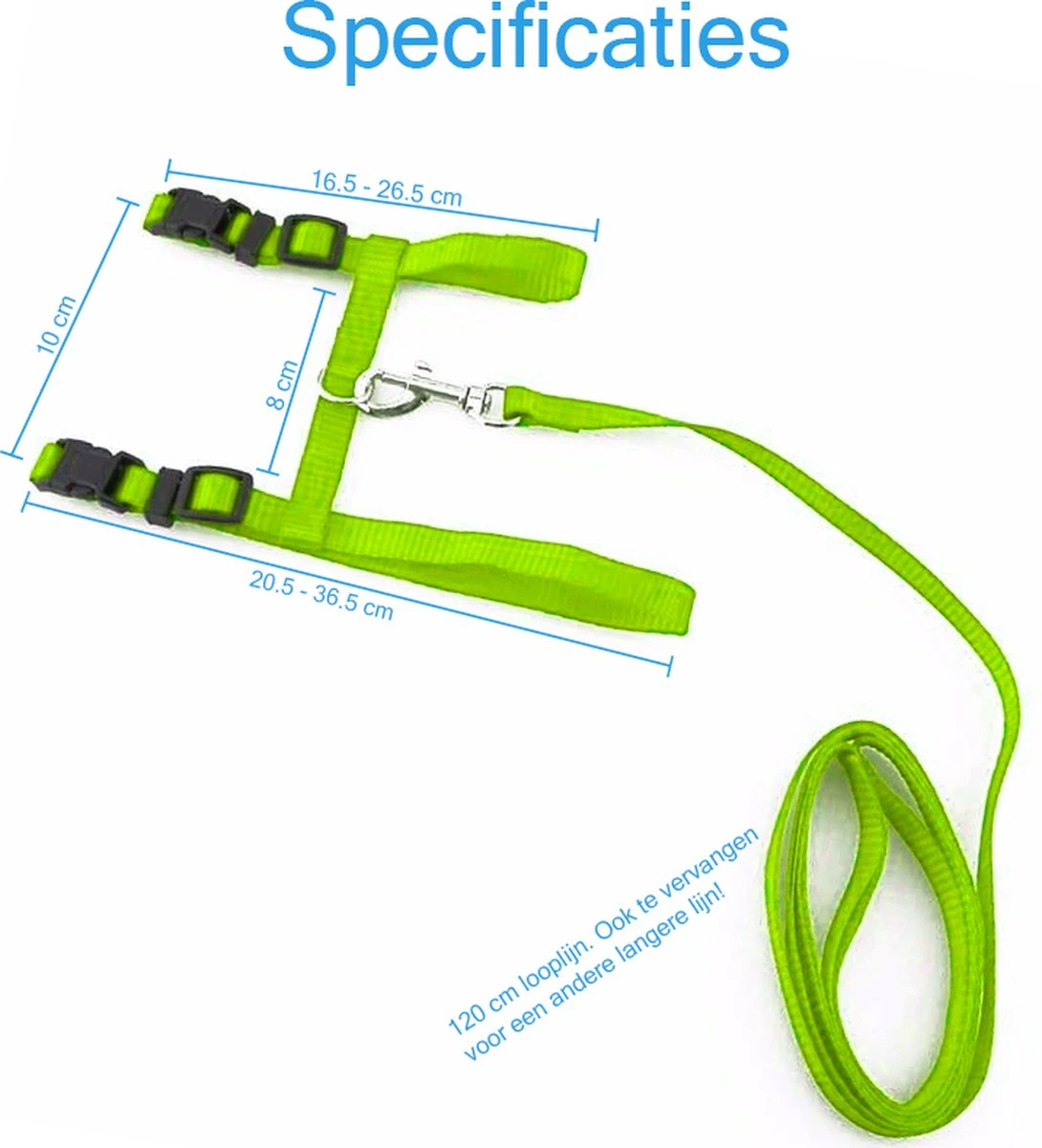 Niet moeilijk doen met afmetingen, deze one-size kattenharnas is gewoon verstelbaar.