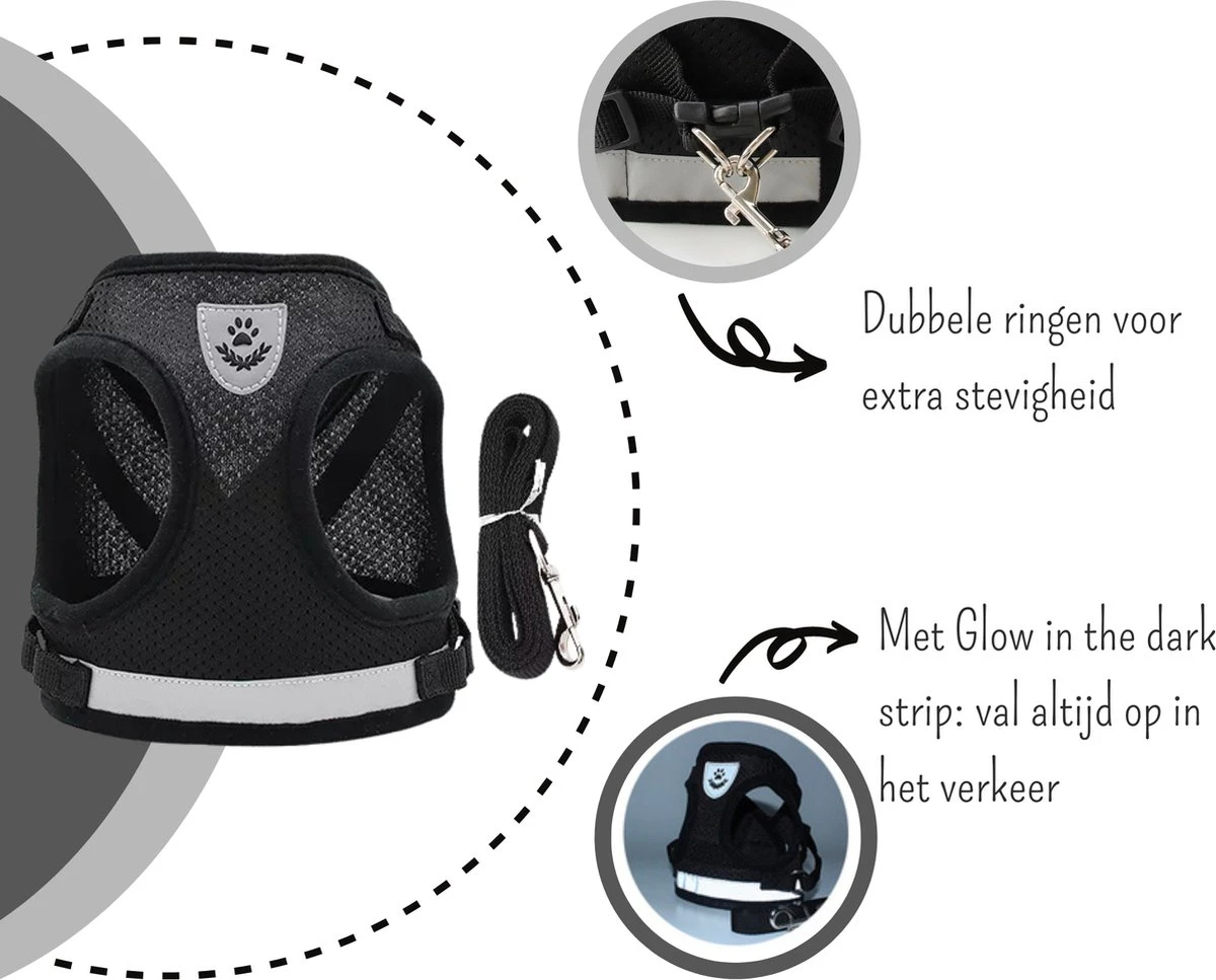 Heb je ook altijd zoveel moeite om je kat in zijn tuigje te krijgen? Dan is dit comfortabele tuigje met anti-trek en anti-verstikking eigenschappen de perfecte oplossing voor je.