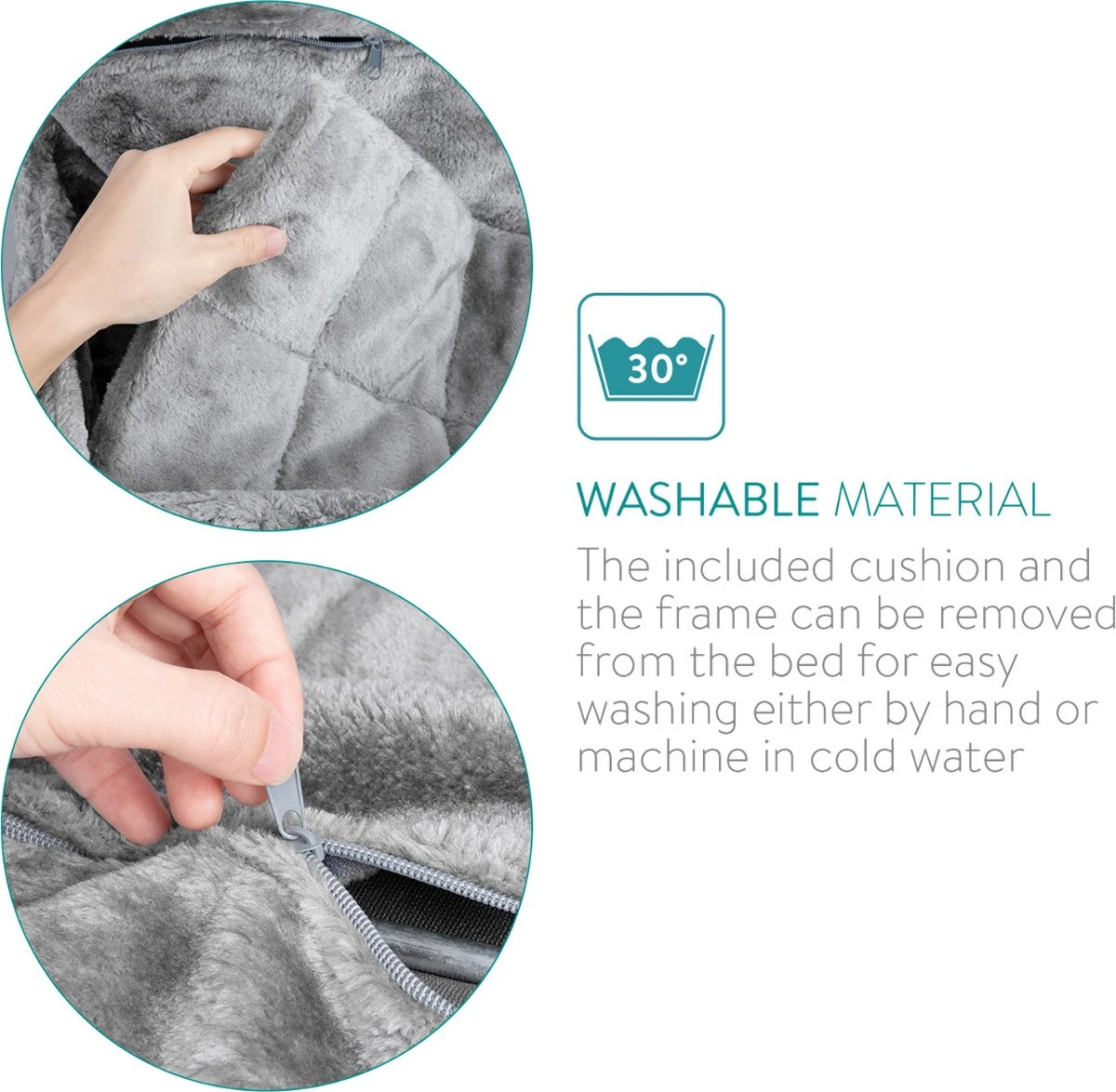 - WASBAAR: Het bed kan makkelijk worden verwijderd van het frame met een handige ritssluiting. Zowel het kattenbed als het uitneembare kussen zijn geschikt voor de wasmachine tot 30 graden Celsius.