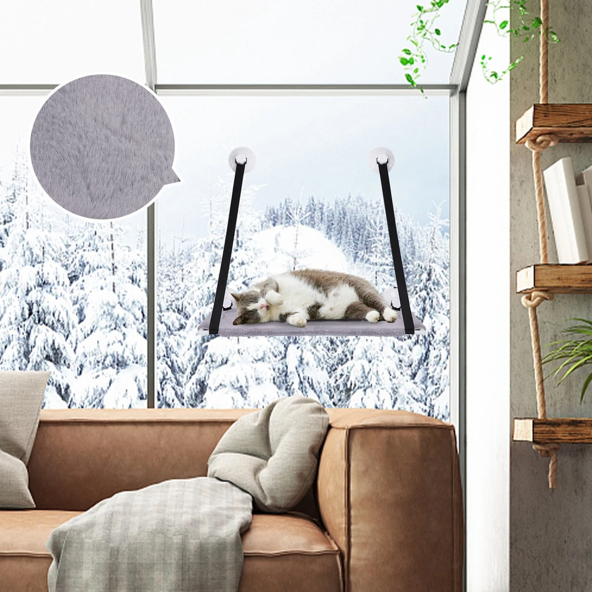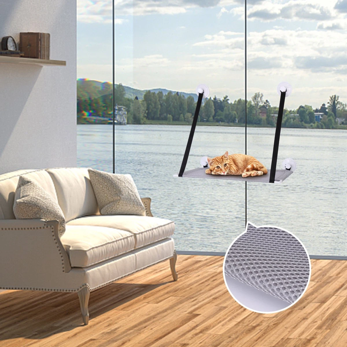 Cat Window Perches offers your cat a high position. save your room space, and allow your pet cats to bask in the sunshine while enjoying the beautiful scenery outside the window.