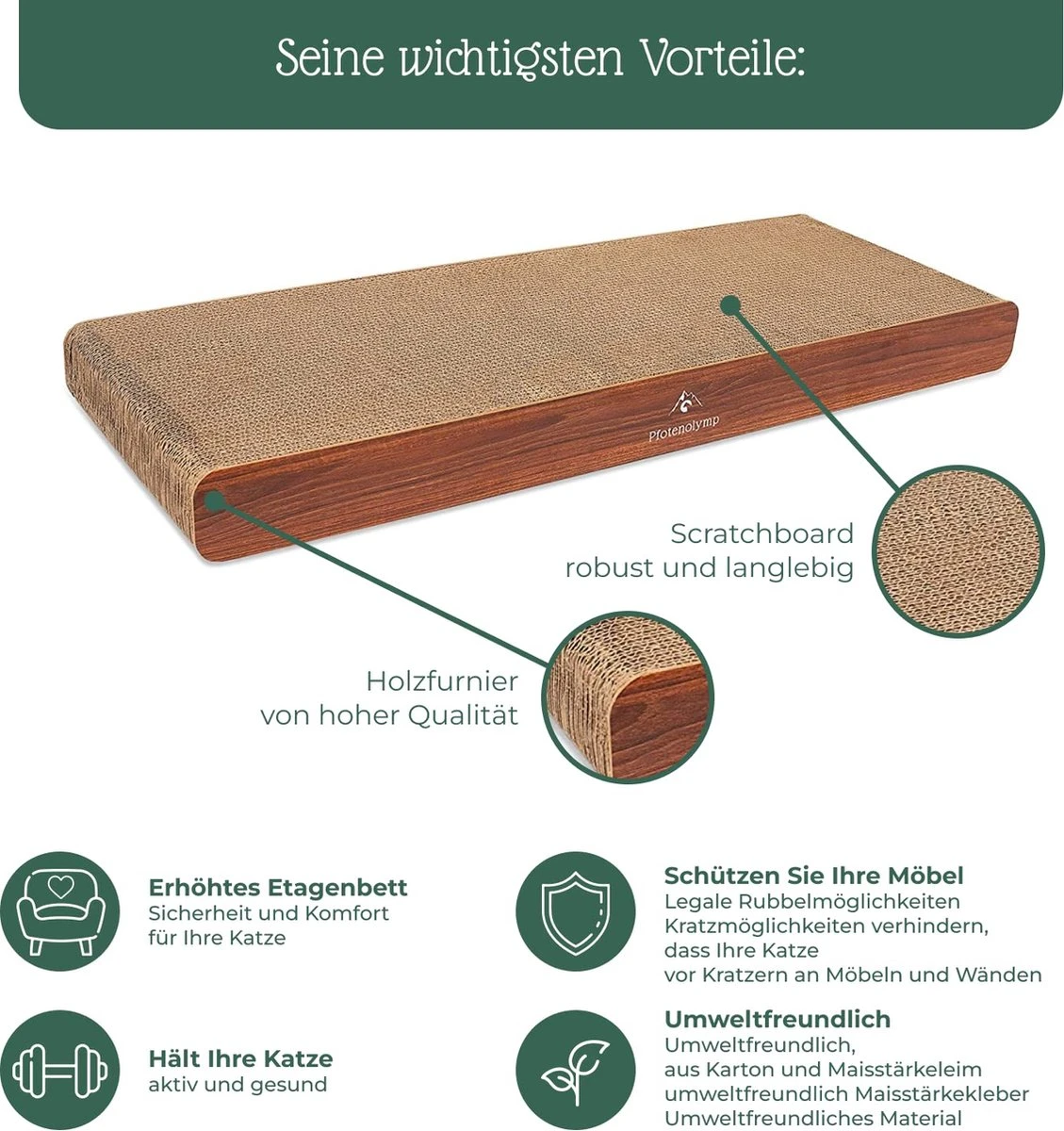 HET BESTE ZICHT VOOR UW KAT: Katten houden van verhoogde posities. Een verhoogde slaap- of krabplek geeft uw kat een gevoel van veiligheid. Uw kat zal zich veiliger en meer ontspannen voelen op de Pfotenolymp muurkrabplank dan op krabplaatsen op de grond. Het muurkrabbed bevordert de regeneratie van uw kat en voorkomt zo uitputting en stress.
